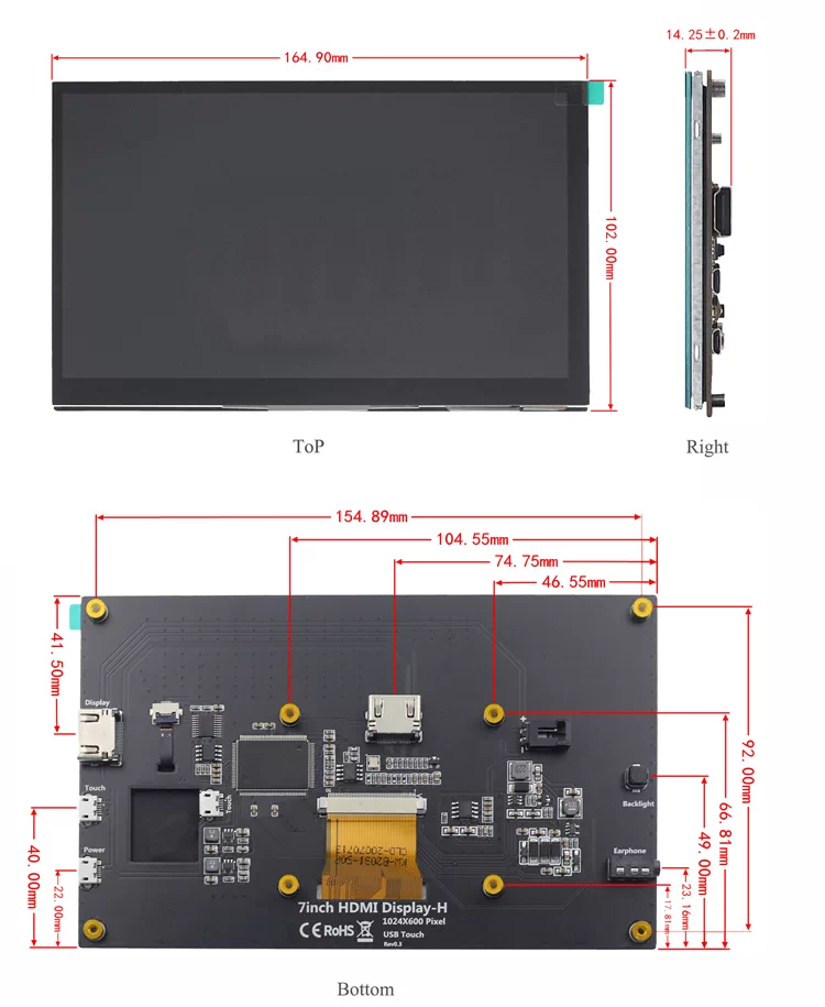 樹莓派7寸顯示屏D款1024*600分辯率320亮度HDMI接口帶觸摸